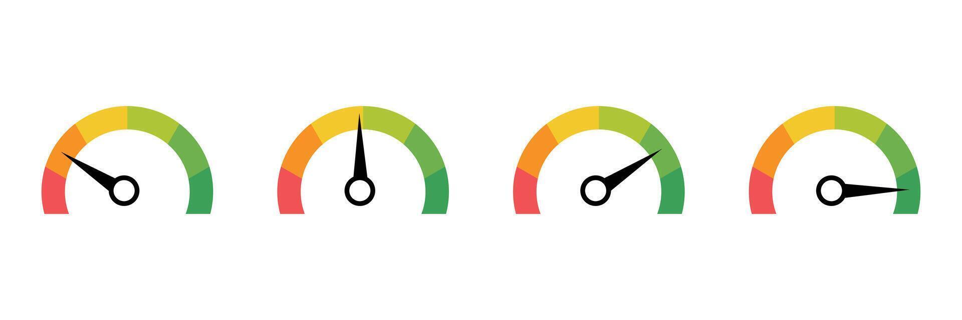 Speedometer gauge set isolated on white background for measuring performance level Pro Vector