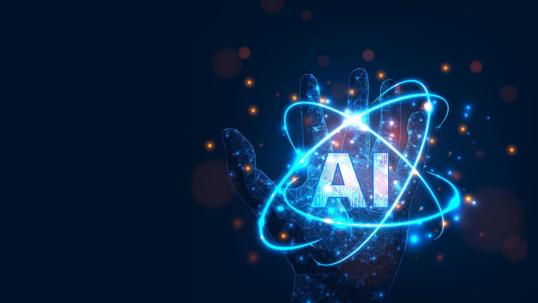 Artificial intelligence in hand polygon shape technology abstract background Pro Vector