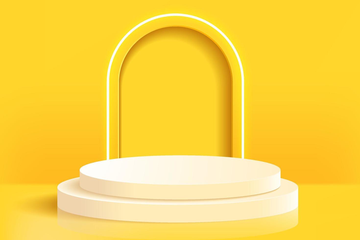 3d abstract scene background white round podium yellow background product presentation mock up show Pro Vector