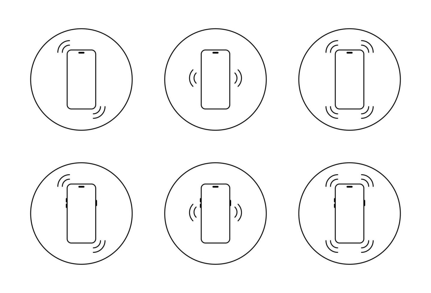 Smartphone vibration icon set in circular outline. Mobile phone ringing and shake symbol Pro Vector