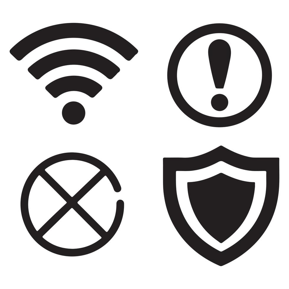 Set of four icons wifi signal, warning, prohibition, and shield, isolated on white background vector