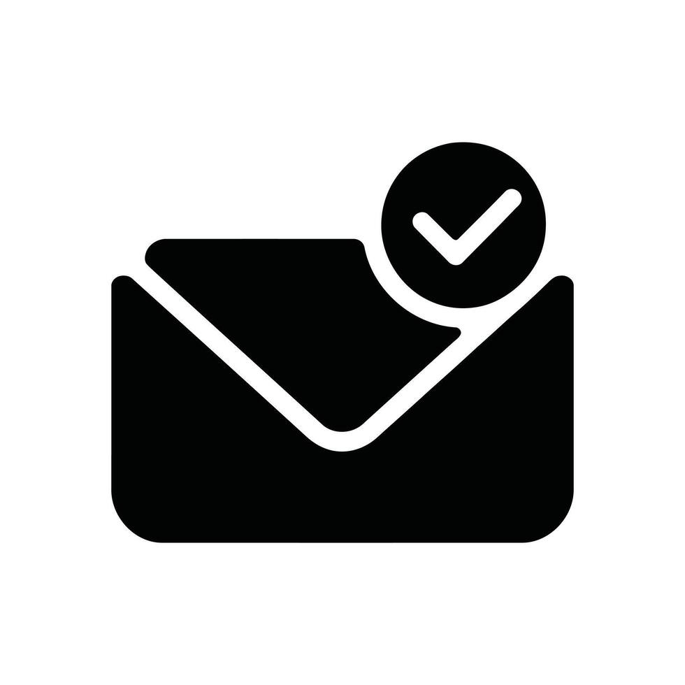 Black Email Envelope Icon with Check Mark, White Background, Simple Design Pro Vector
