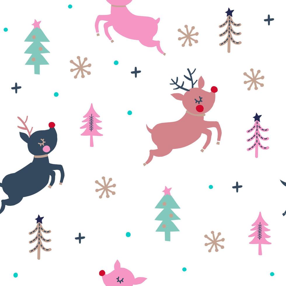 Seamless Vector pattern with cute deer, trees, and landscape elements Isolated on white background. Hand drawn vector illustration. Use for Background, fabric, and others. Free Vector