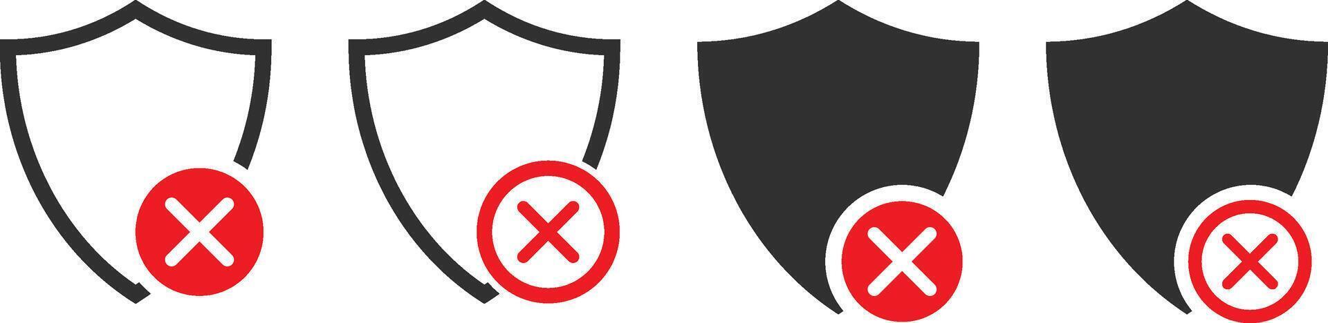 shield icon with cross mark symbol. cross mark with protection security shield icons Pro Vector
