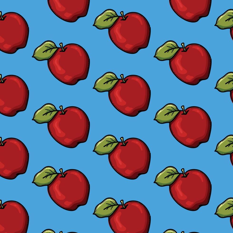 Bright Red Apple Pattern on Blue Background for Seamless Design and Stock Use Pro Vector