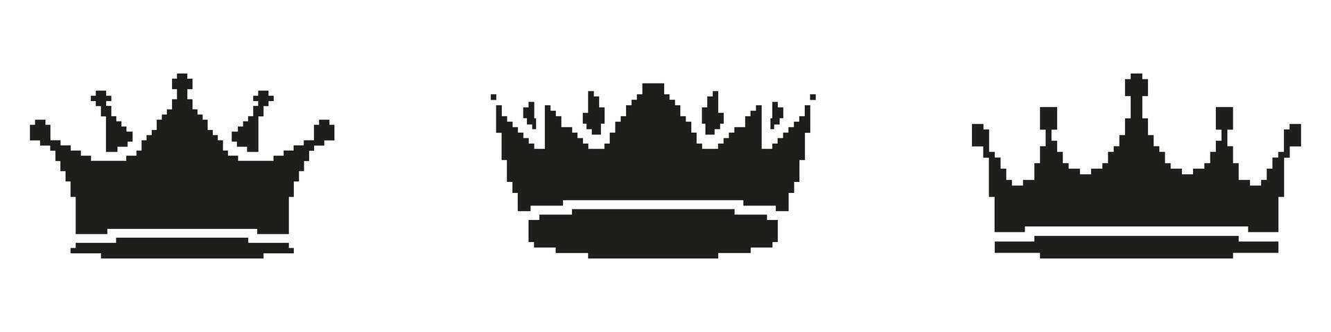 Minimal Crown Pixel Icons Pixelated Icon Set. Pixel Art Symbol Collection of Simplified Regal Crowns With Flat Sharp Spikes. Isolated Illustration Pro Vector