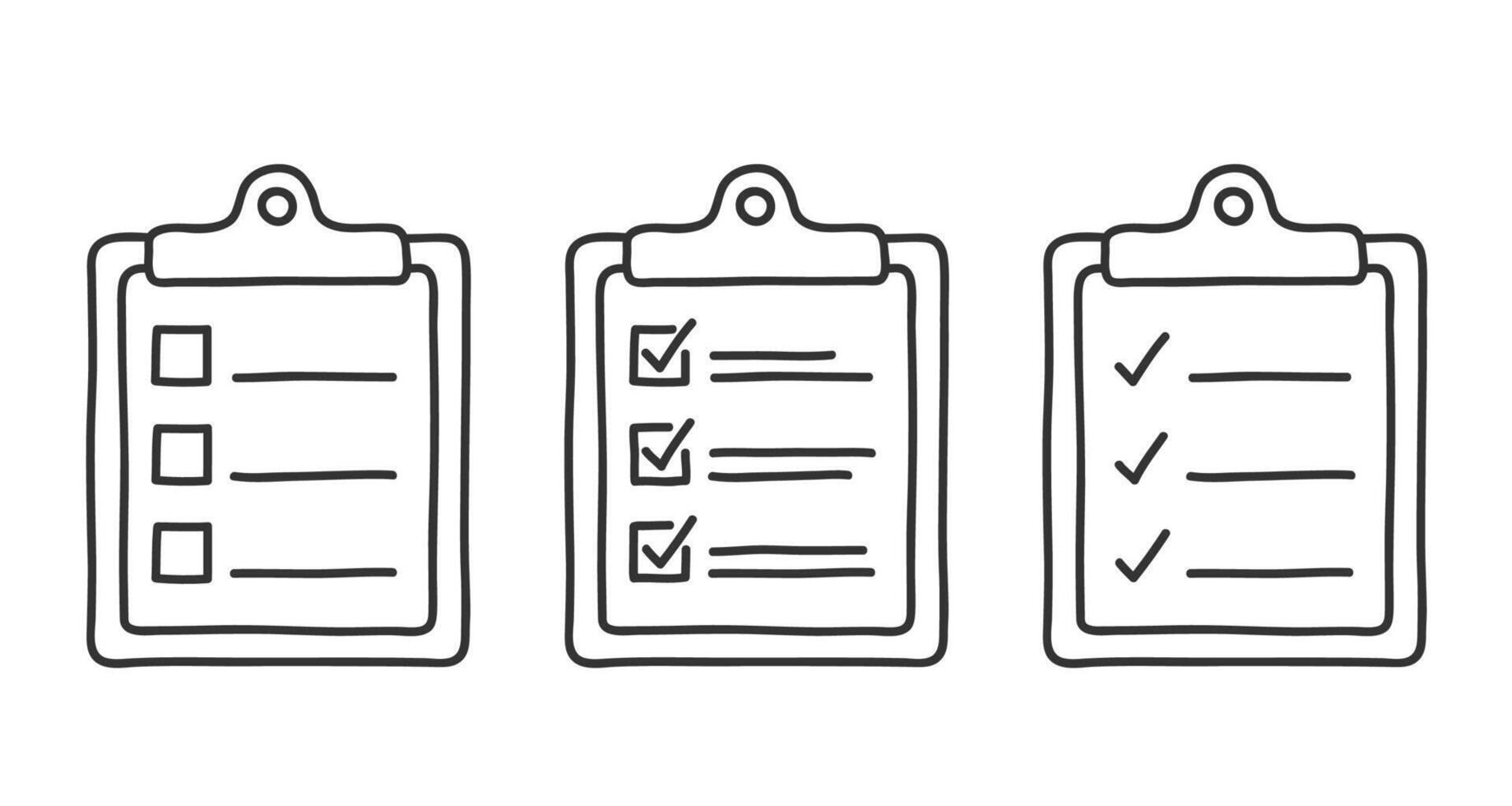 Clipboards with check boxes, check list icons, hand drawn doodle style Pro Vector