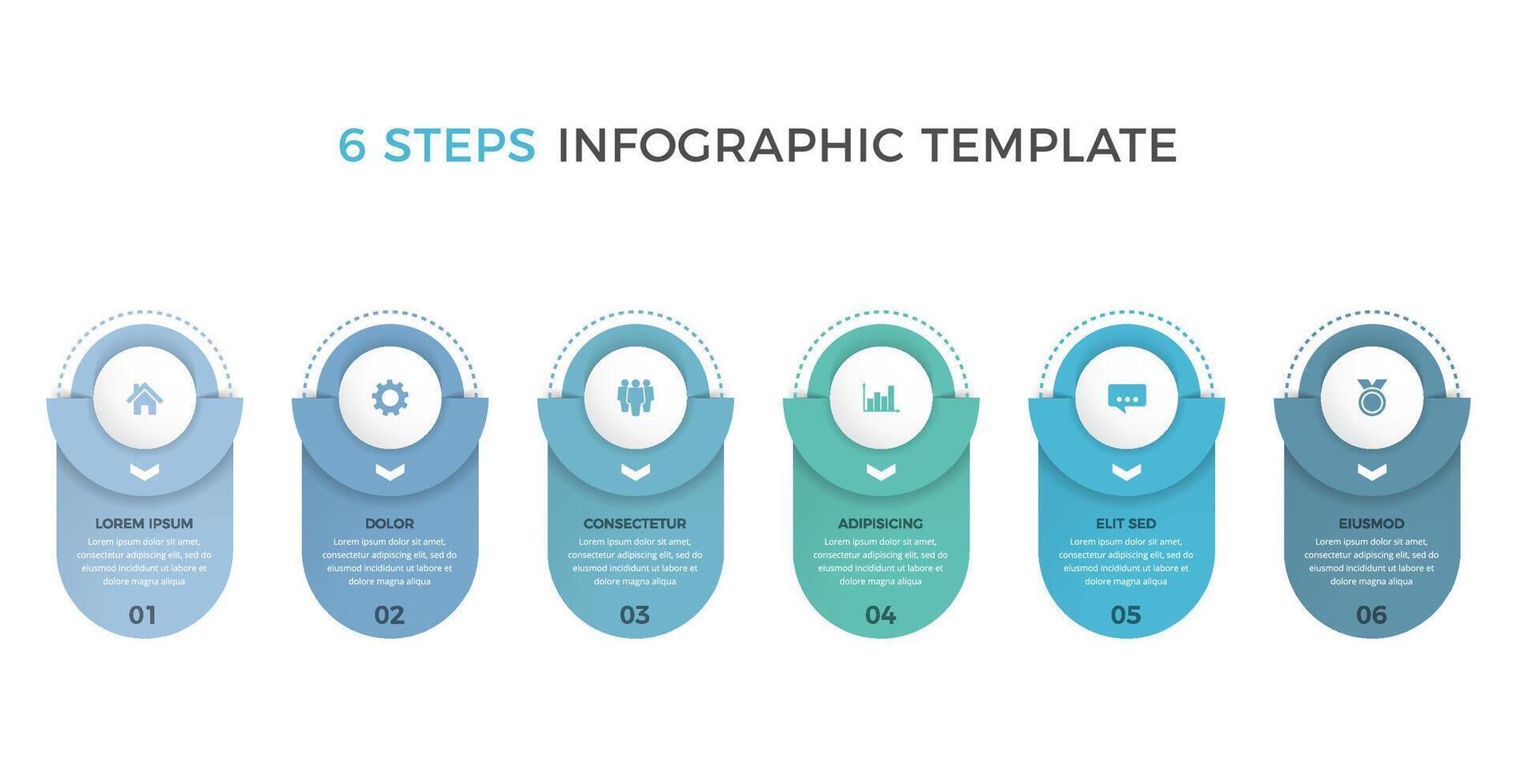 Infographic template with six numbered parts with icons, process, workflow chart Pro Vector