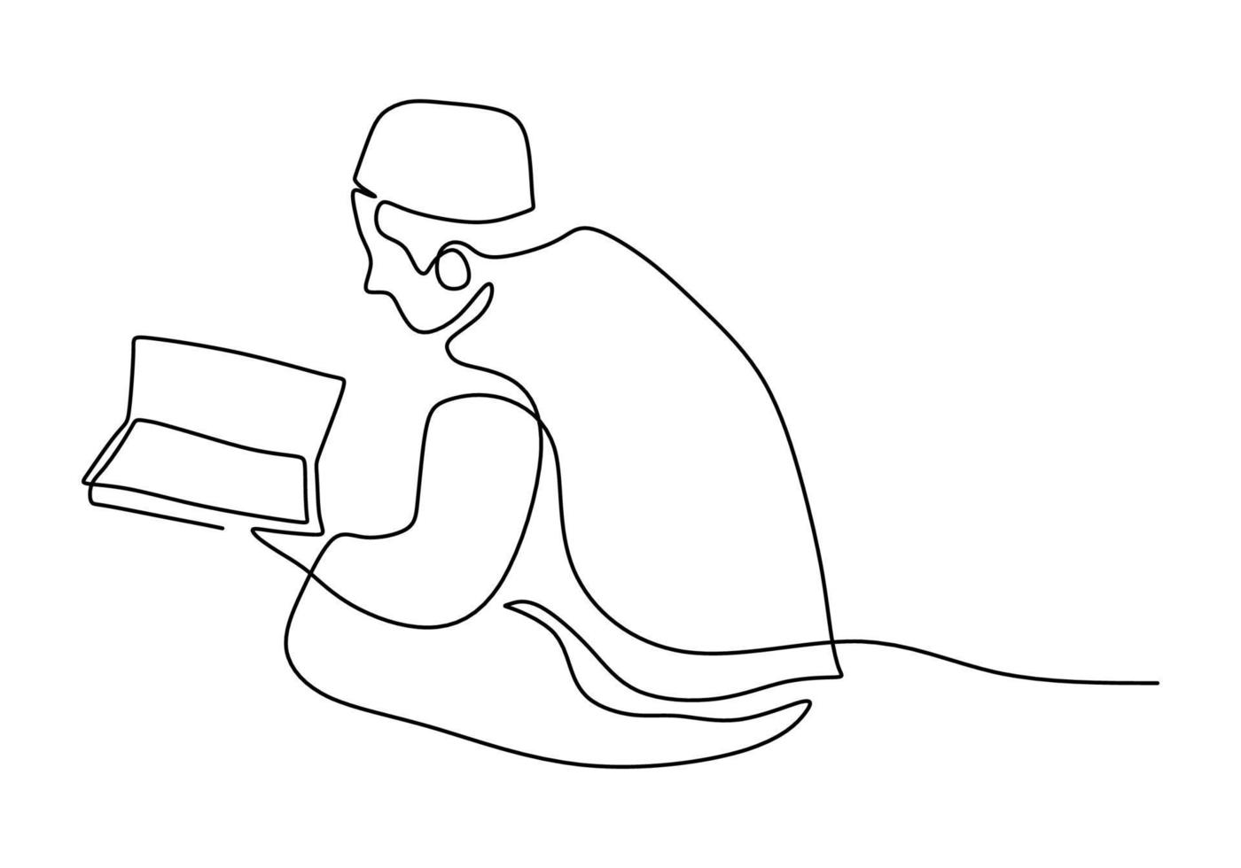 One continuous single line of man recite quran on white background. Pro Vector