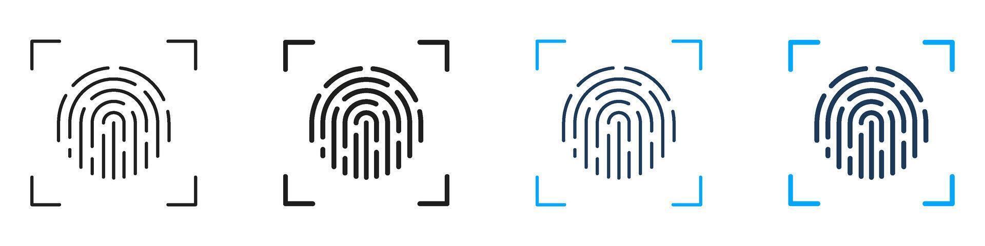 Biometric Fingerprint Authentication Line and Solid Icon Set. Security Identity Verification Digital Access Protection Symbol Collection. Isolated Illustration Pro Vector