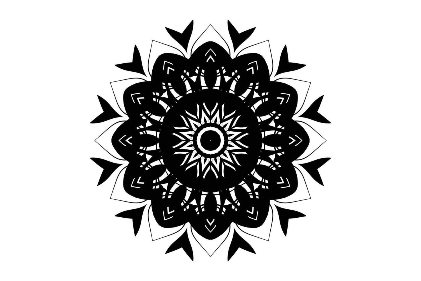 Abstract mandala in black and white with floral patterns dots angular lines and circular concentric form vector