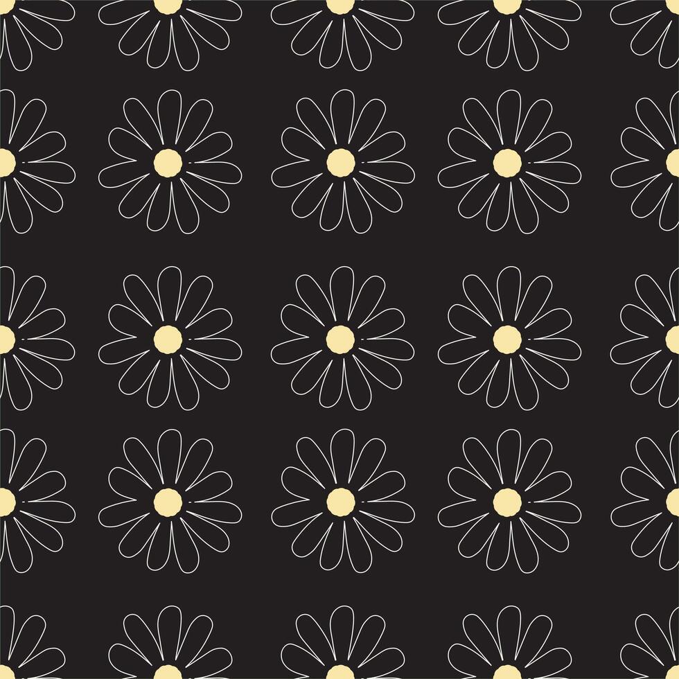 Seamless pattern with linear chamomile flower on black background. Pro Vector