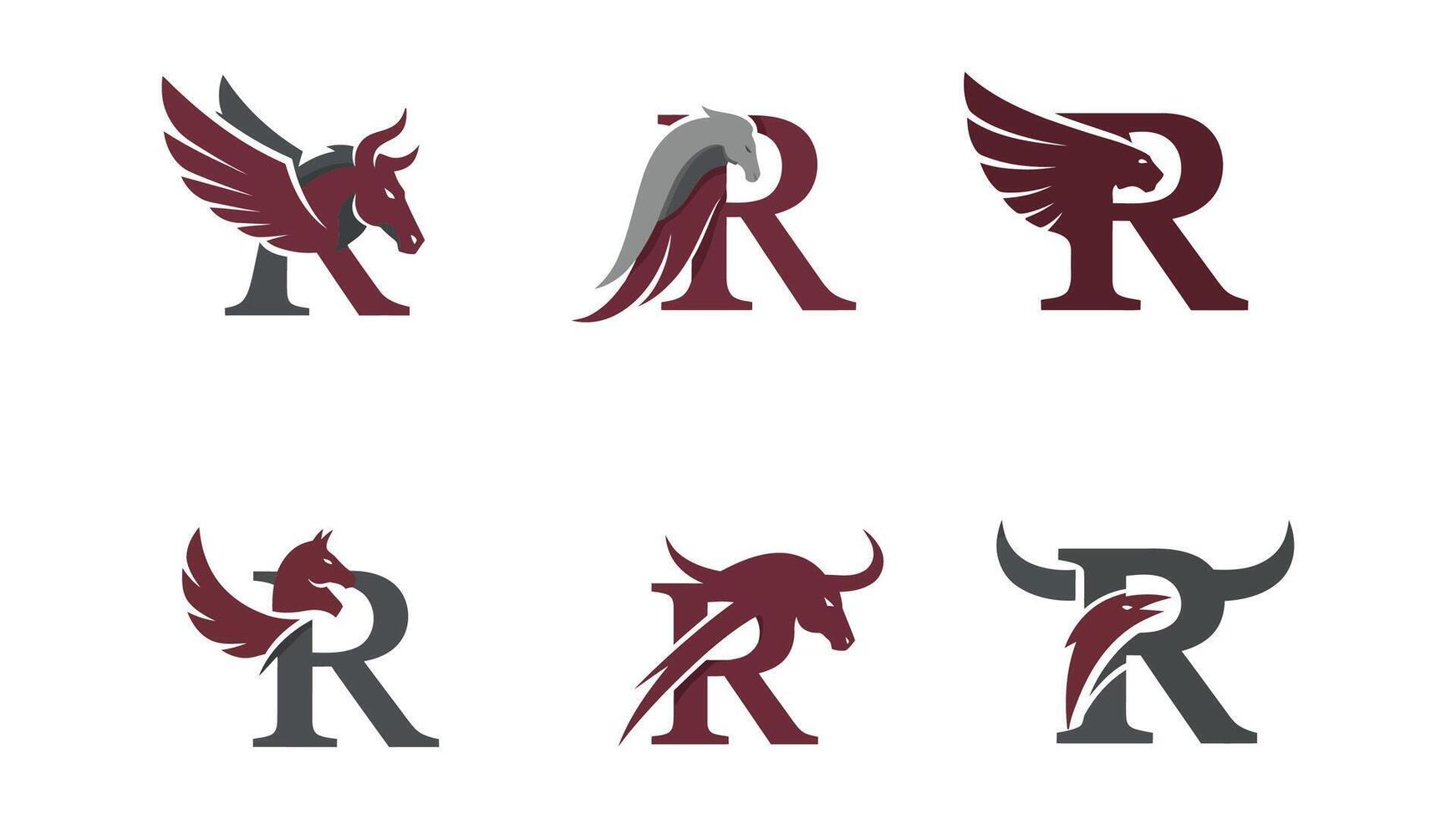 R Letter Logos With Wings, Horns, and Mythic Elements for Branding and Identity Design Pro Vector
