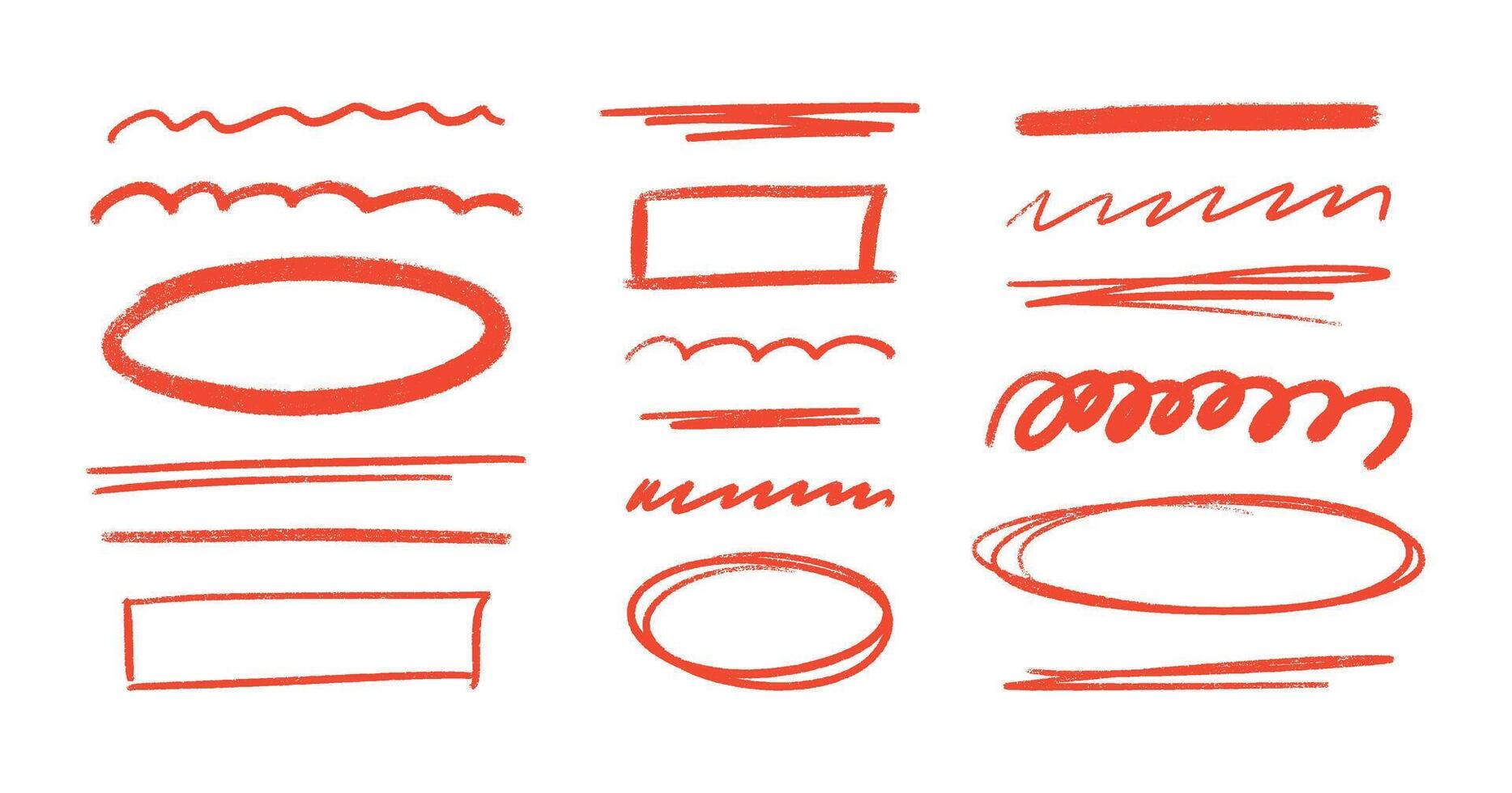 Crayon highlight line with pencil underline set for text emphasis and markup design. Pro Vector