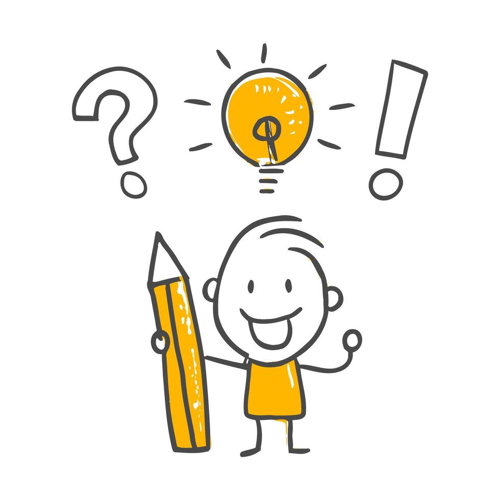 The Enthusiastic Representation of a Man Discovering a Great Idea and Supporting the Problem-Solving Process with a Pencil. Pro Vector