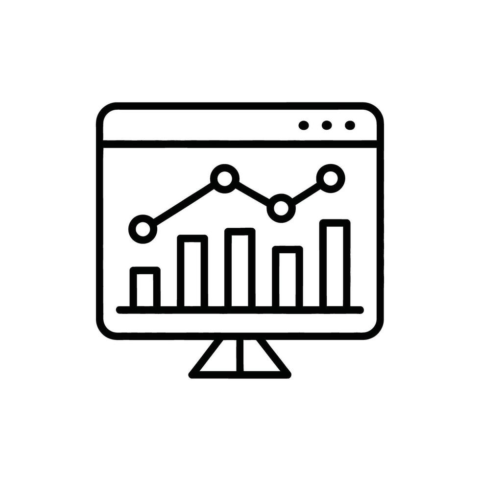 Financial Data Visualization on Computer Screen with Bar Graph and Line Chart Illustration vector