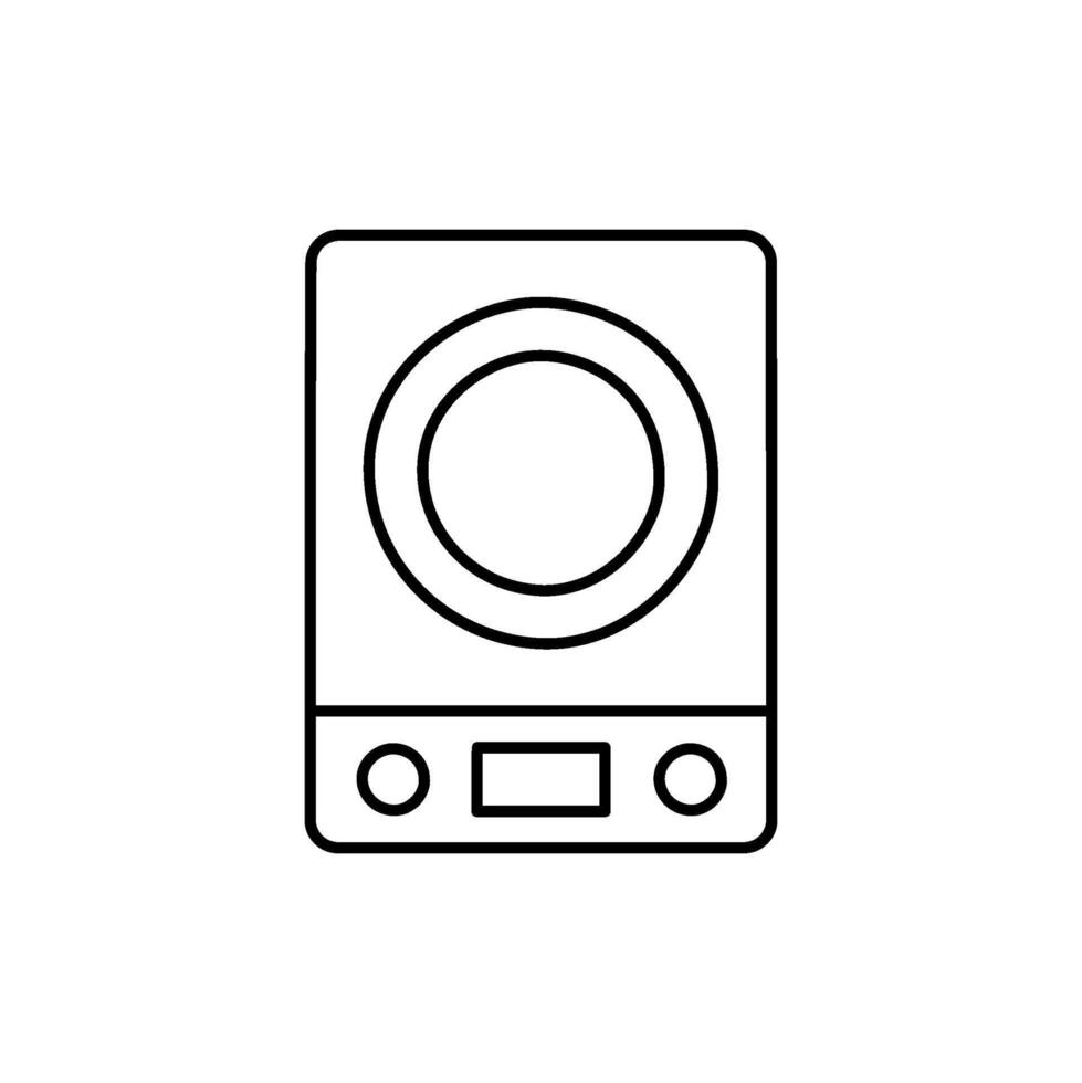 A minimalist line art illustration of a digital kitchen scale with a circular weighing platform and control buttons on a white background Pro Vector