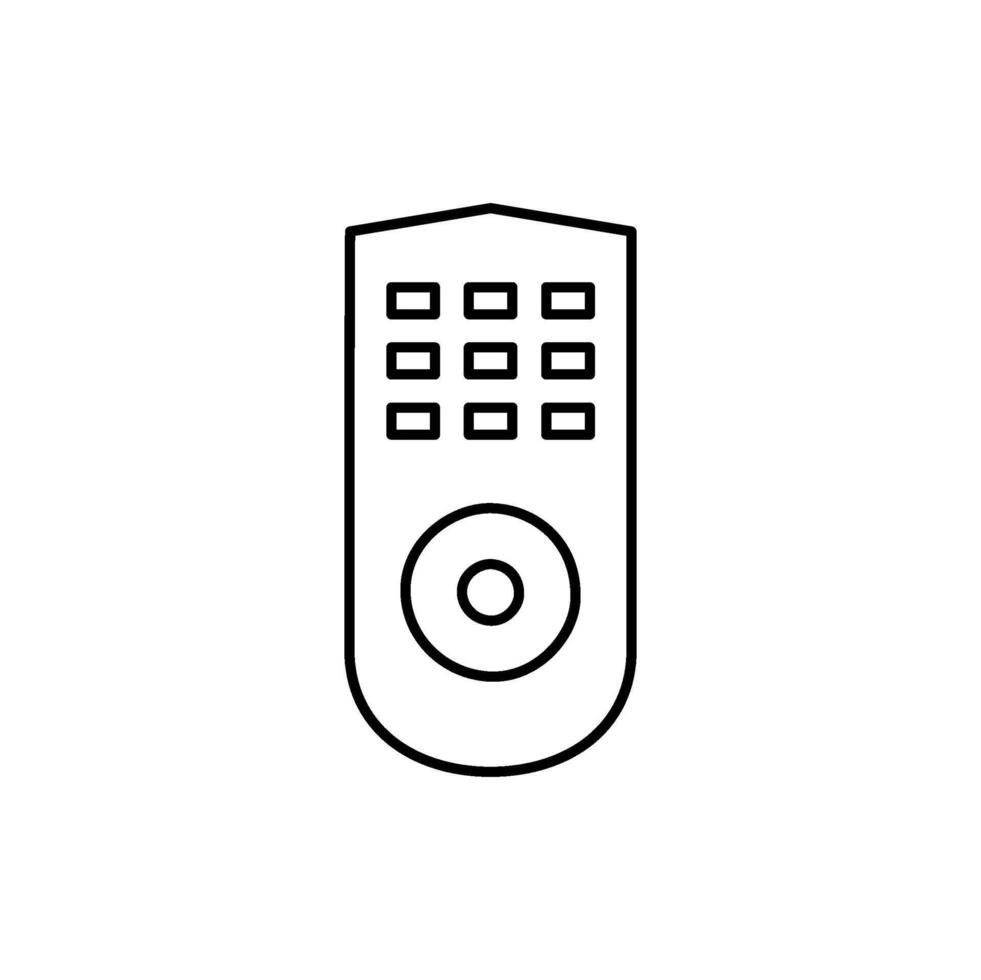 Simple icon of a remote control with buttons and a circular dial on a white background Pro Vector
