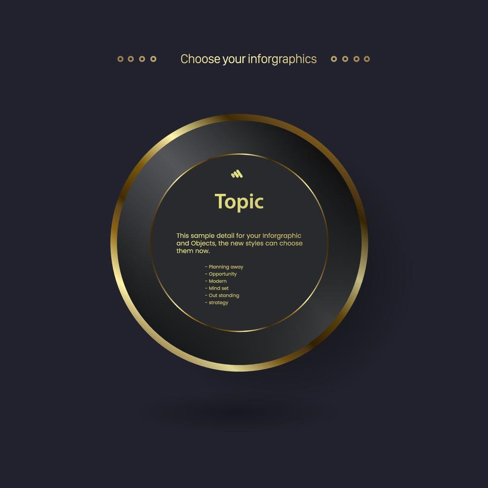 THREE Golden multipurpose Infographic Vector template with Three elements options and Premium golden version on a dark background with 3 golden info chart template design Pro Vector