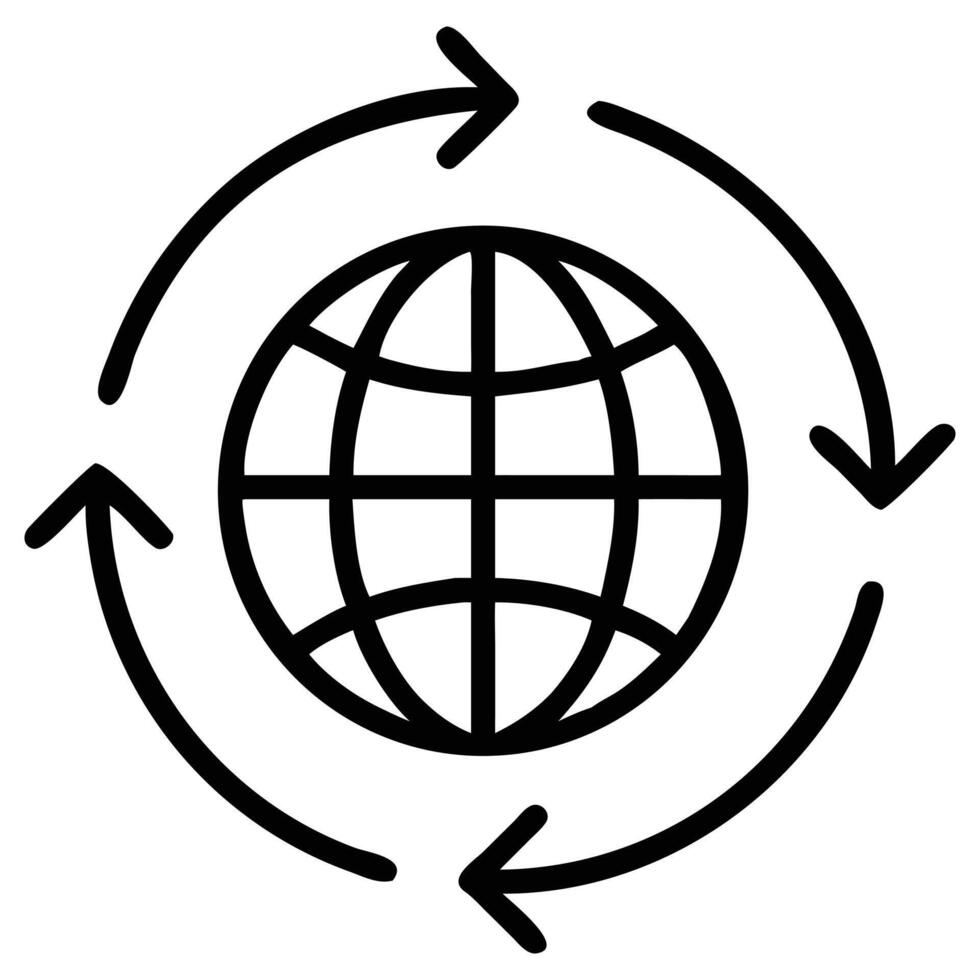 Global circulation icon, earth globe outline with circular arrows indicating rotation Pro Vector
