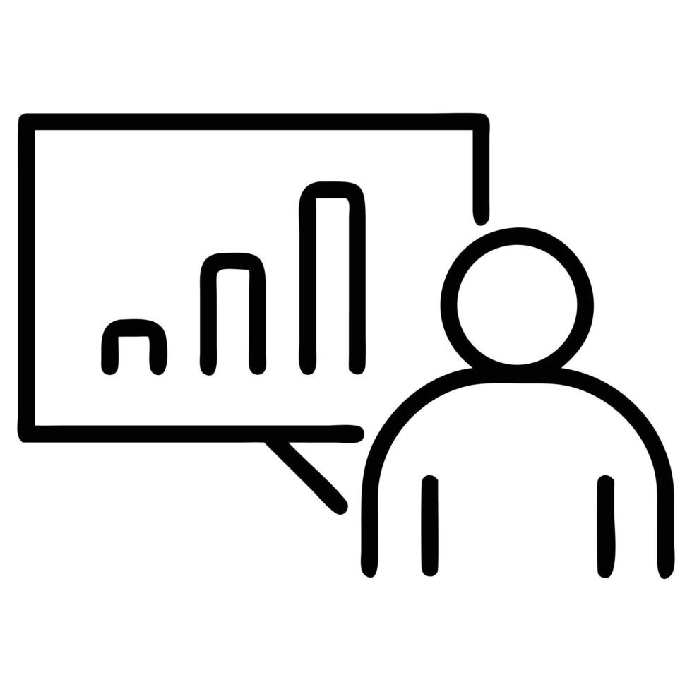 Man presenting bar graph chart in a simple line art drawing Pro Vector