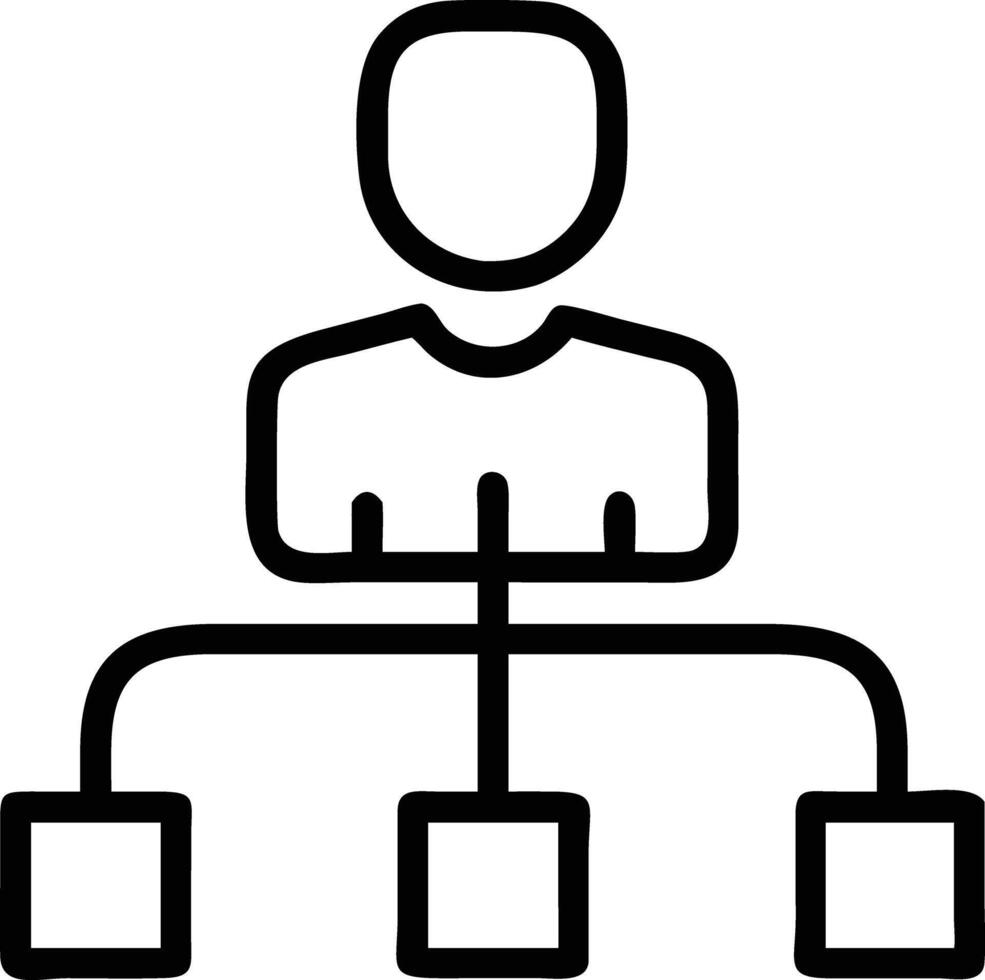 Simple flowchart icon illustration depicting person connected to three elements in outline style Pro Vector