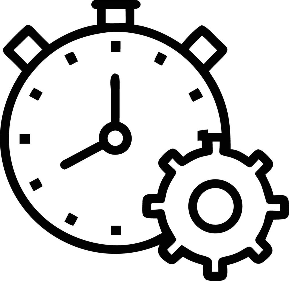 Stopwatch with gear outline icon representing settings, parameters, optimization, and time management concept Pro Vector