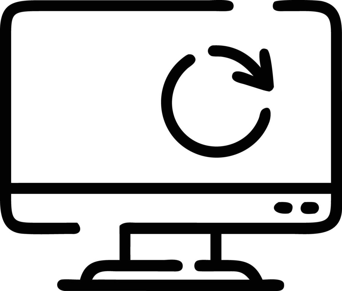 Computer monitor with refresh arrow in outline style illustration Pro Vector