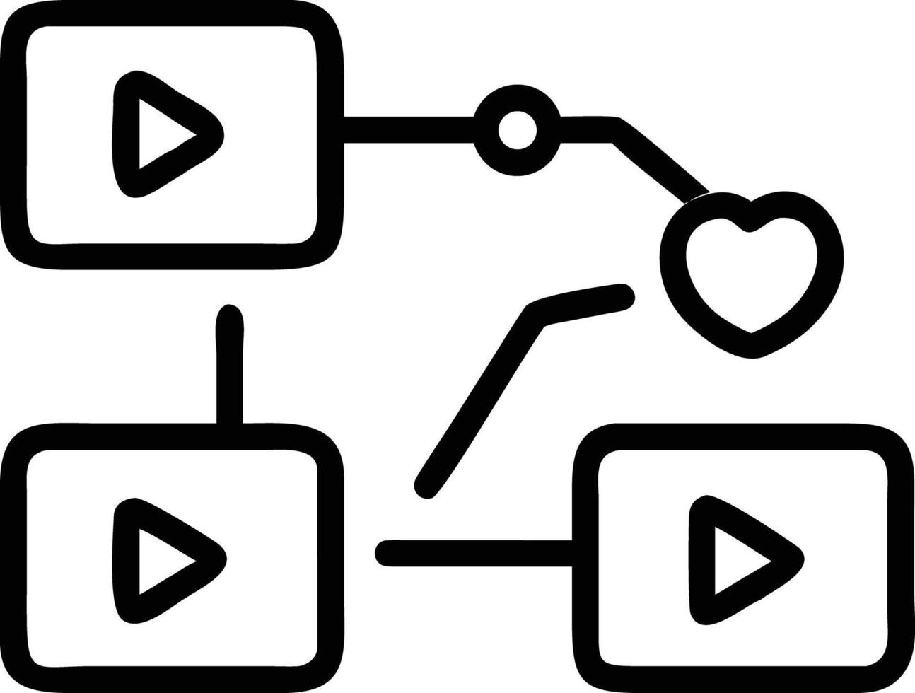 Outline sharing workflow , connecting play buttons and a heart in simple style Pro Vector