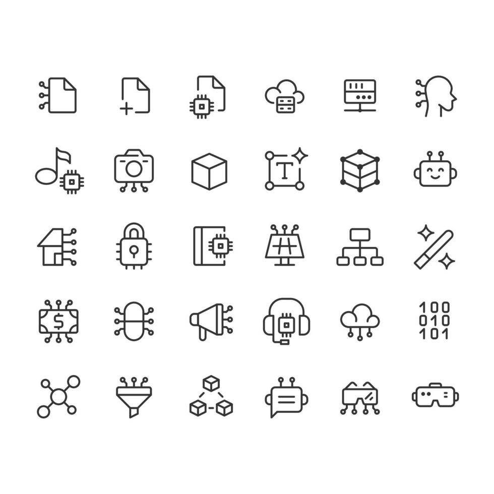 Artificial intelligence line ui icons set. Cybersecurity, privacy. Data processing, analytics. Isolated outline symbols iconography. User interface elements linear, pixel perfect Pro Vector