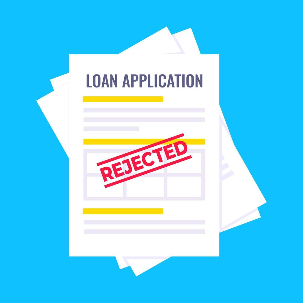 Rejected credit or loan form with file and claim form on it, paper sheets isolated on light blue background. Pro Vector