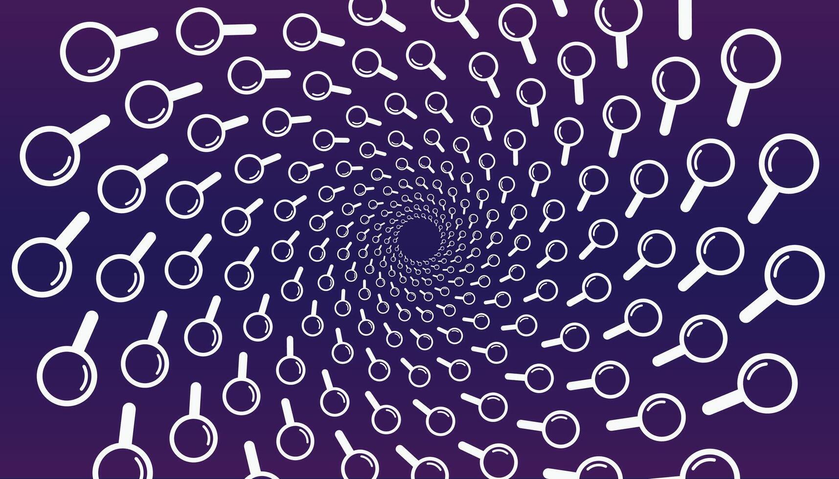 Abstract spiral magnifying glass icons on purple, symbolizing search, focus, and analysis ideal for tech, data, and research concepts. Pro Vector