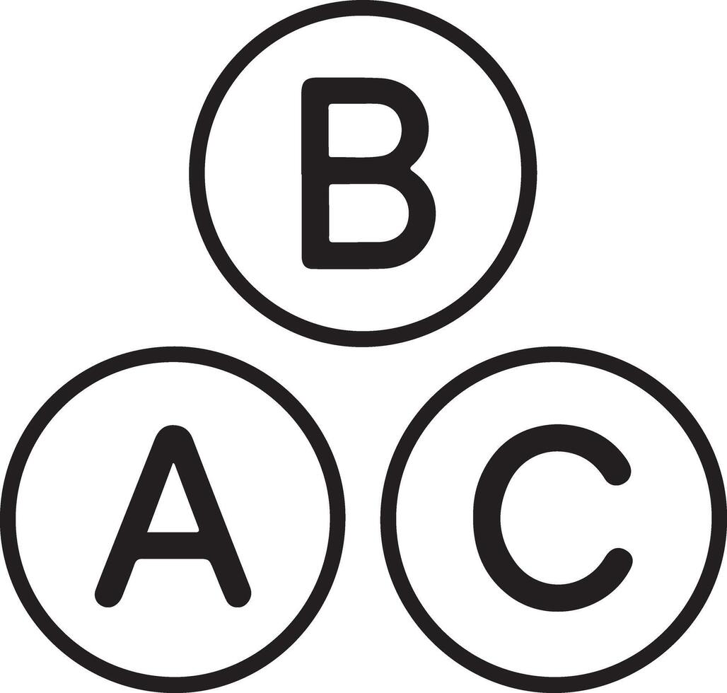 Three interconnected circles with letters a b and c inside representing options or choices Pro Vector