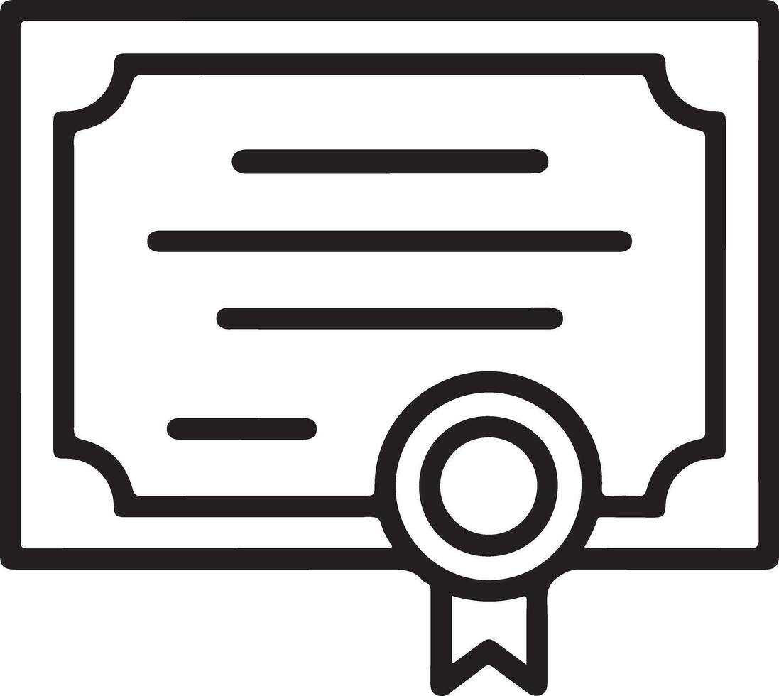 Simple outline icon of a certificate or diploma with a ribbon and seal Pro Vector