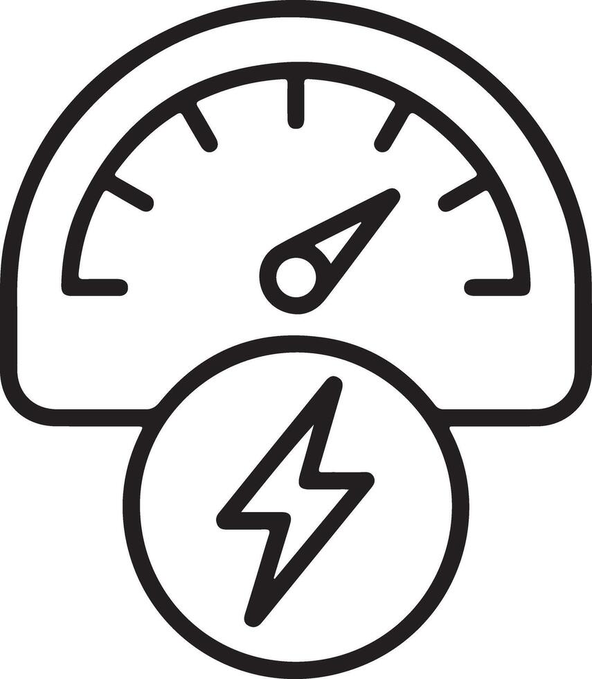 Simple line art icon of a speedometer with a lightning bolt symbol Pro Vector
