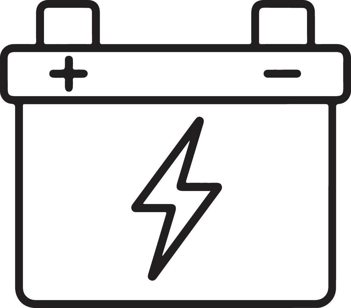 Simple outline icon of a car battery with a lightning bolt symbolizing power Pro Vector