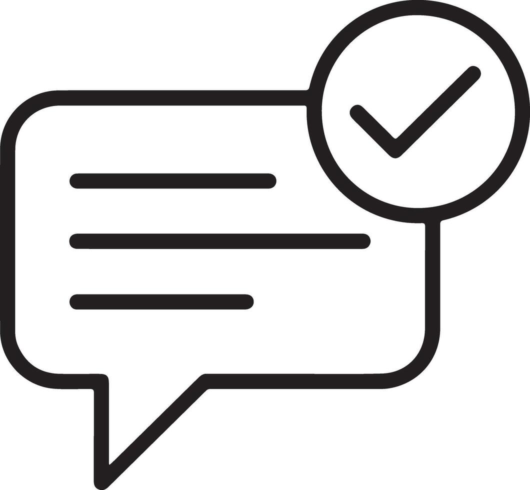 Simple line icon of a speech bubble with a check mark inside a circle Pro Vector