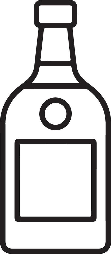 Simple outline drawing of a liquor bottle with a blank label and cap for customization Pro Vector