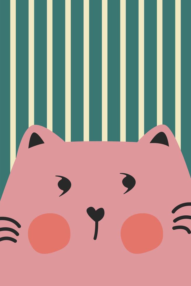 Cute cartoon cat illustration with vertical line in flat style with plain background Pro Vector
