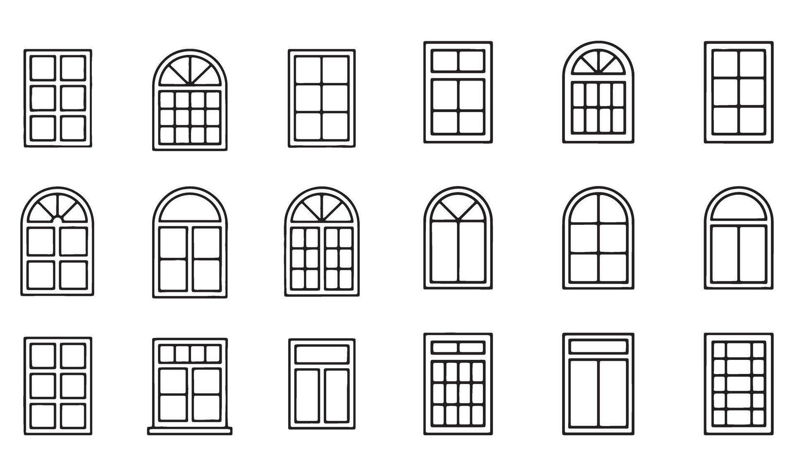 Collection of Window Frame Illustrations Showcasing Various Designs and Styles for Architectural and Interior Design Projects Pro Vector