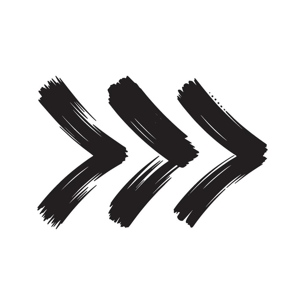 Dynamic Trio of Hand Drawn Arrows Boldly Pointing Rightward Direction and Flow Indicating Movement and Progression on White Background Pro Vector