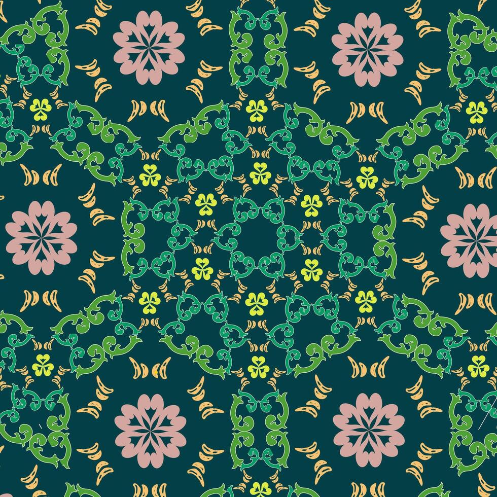 Batik Tumpal Tessellation on Green Background using Hexagonal Grid Pro Vector
