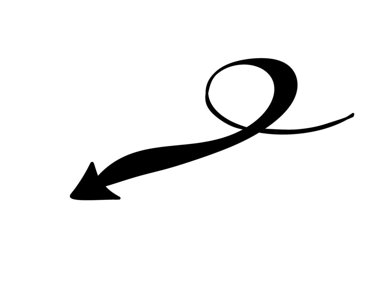 Curved black arrow pointing downwards on a white background symbolizing direction and guidance with a playful and whimsical mood for de Pro Vector