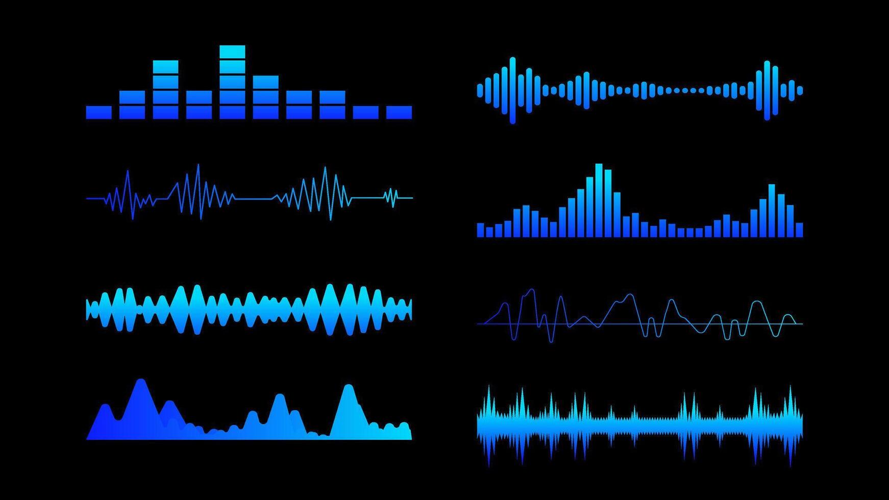 Blue Gradient Audio Waveform Collection with Futuristic Sound Visualization Elements for Music, Podcast, and Digital Media Design Pro Vector