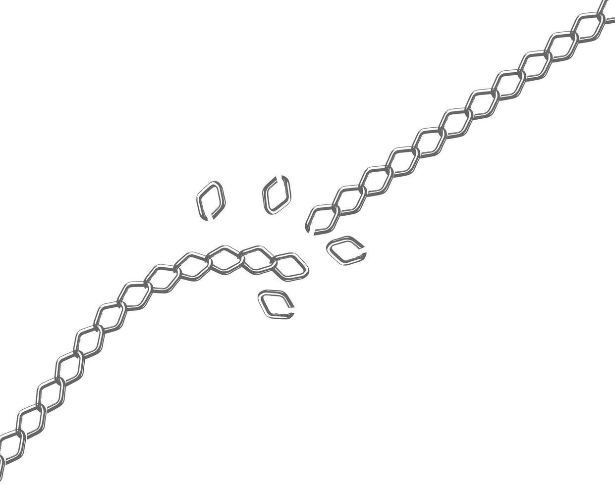 Broken metal chain on a white background symbolizing fragility vulnerability and the importance of strength in overcoming challenges an Pro Vector