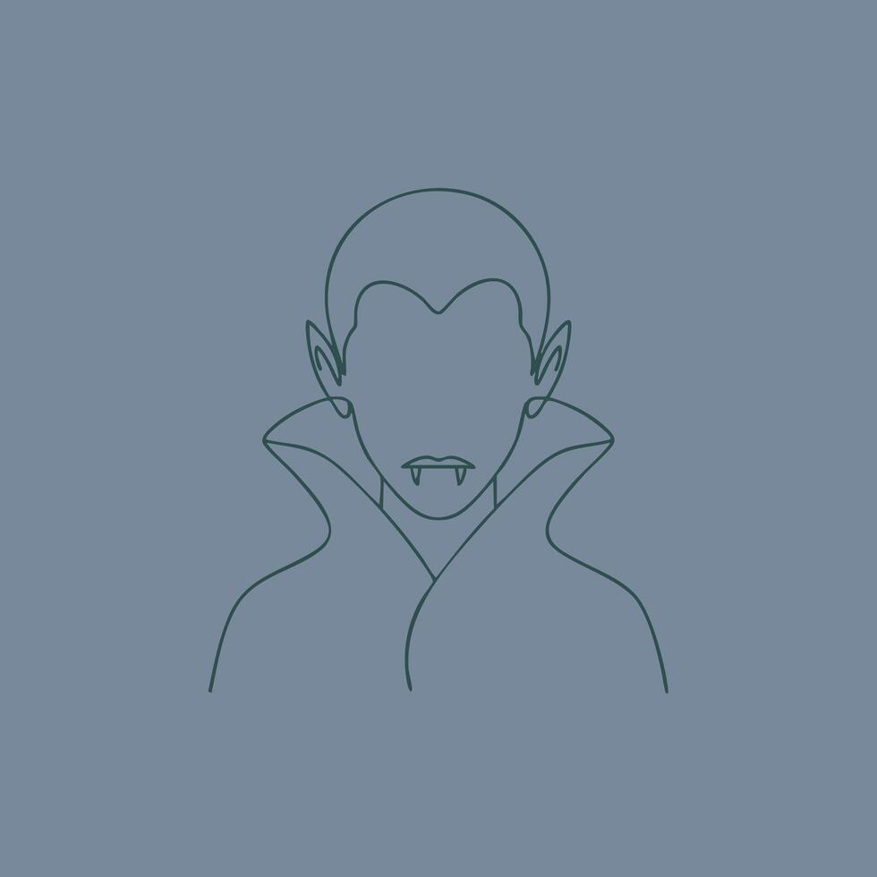 Minimalist Line Drawing of a Vampire Character with Pointed Ears and Fanged Smile on a Solid Pro Vector