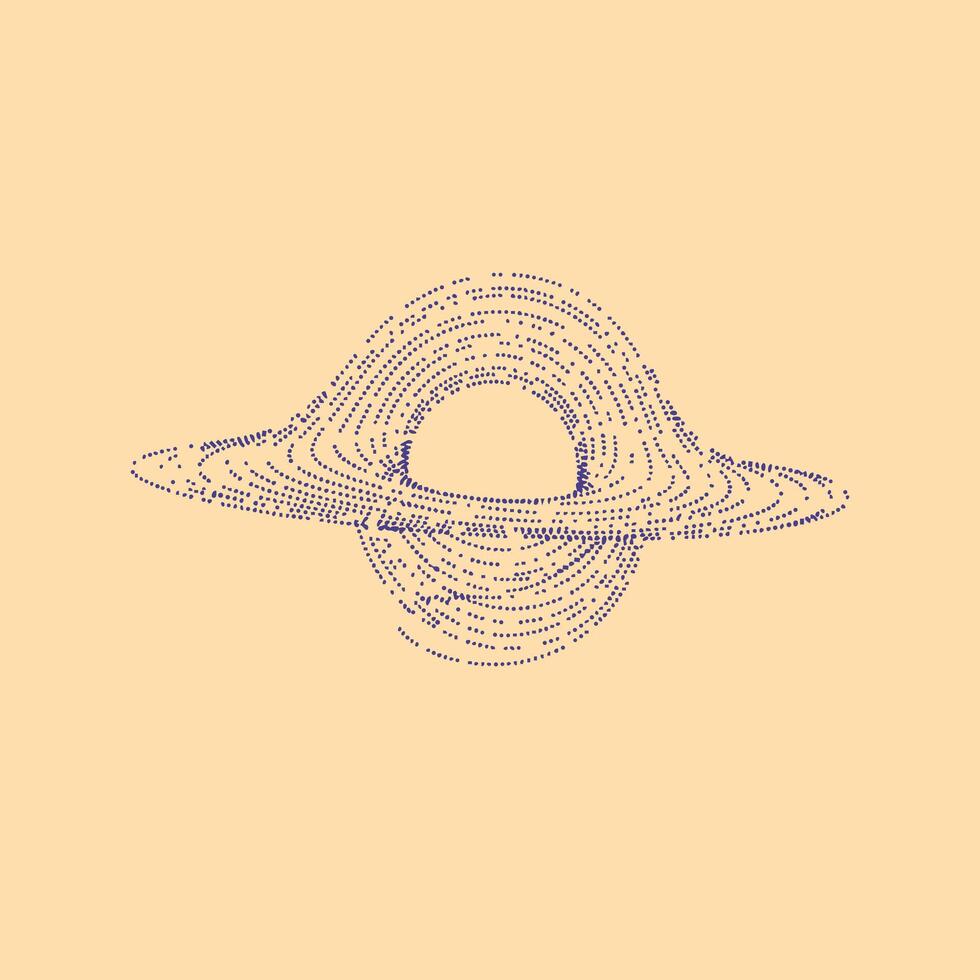 Abstract digital representation of a planet with rings, composed of dotted lines on a soft pastel Pro Vector