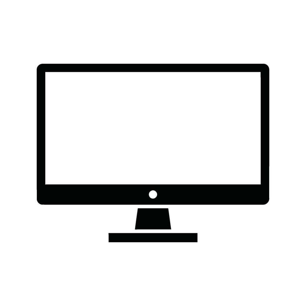 Minimalist black silhouette icon of a desktop computer monitor screen on a white background Pro Vector
