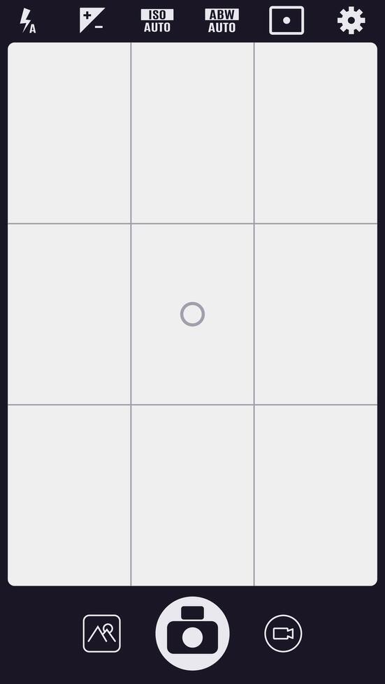 Smartphone camera app interface with viewfinder grid Pro Vector