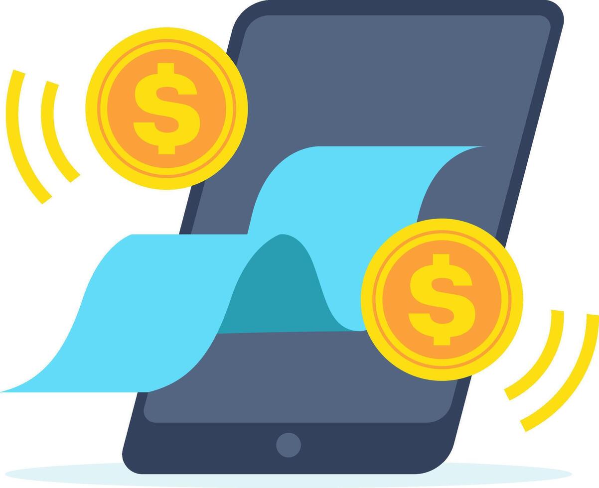 Mobile phone sending digital payment with coins and scroll Pro Vector